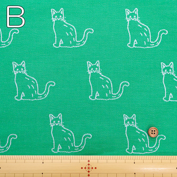 Banshu-ori Cotton Jacquard Fabric - Retro Animals Cat
