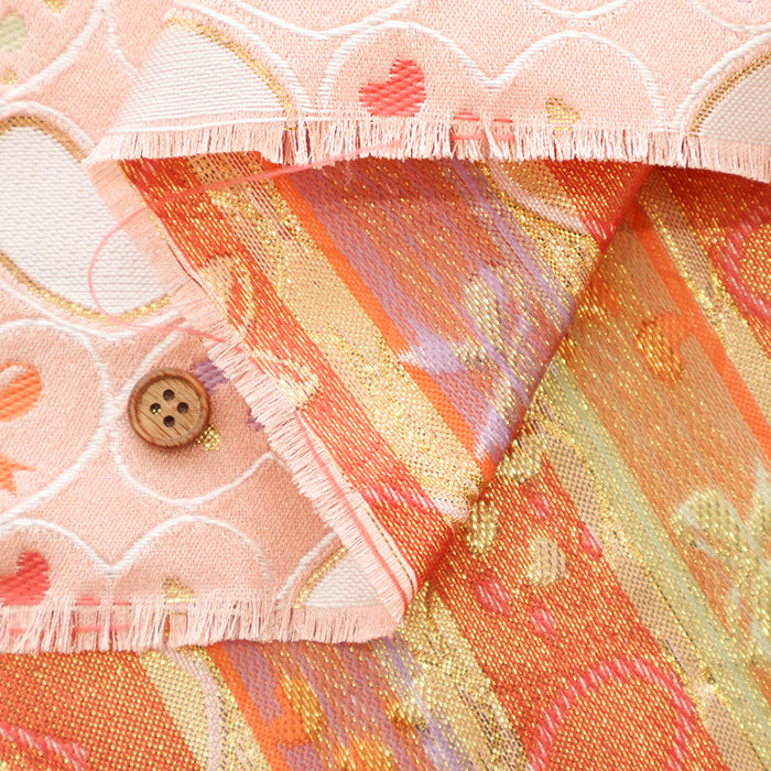 Kinran is a type of weaving in which gold and silver threads are mixed with colored threads as weft, and woven in such a way that a pattern emerges.