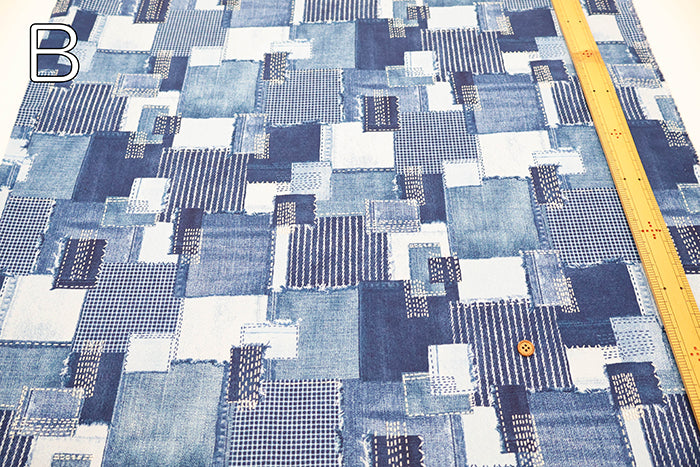 Cotton Twill Fabric - Sashiko-style Patchwork 1
