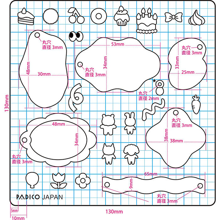 Includes six stylish wave-shaped plates and twenty parts with sweet motifs.