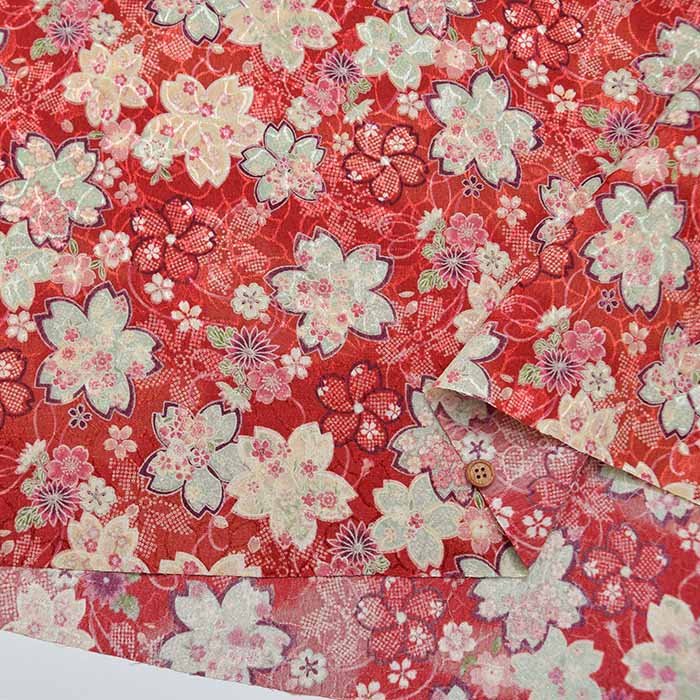 Esta es una tela tradicional utilizada para kimonos y otra ropa tradicional, pero esta está hecha de poliéster, que es resistente al agua y la arrugas.