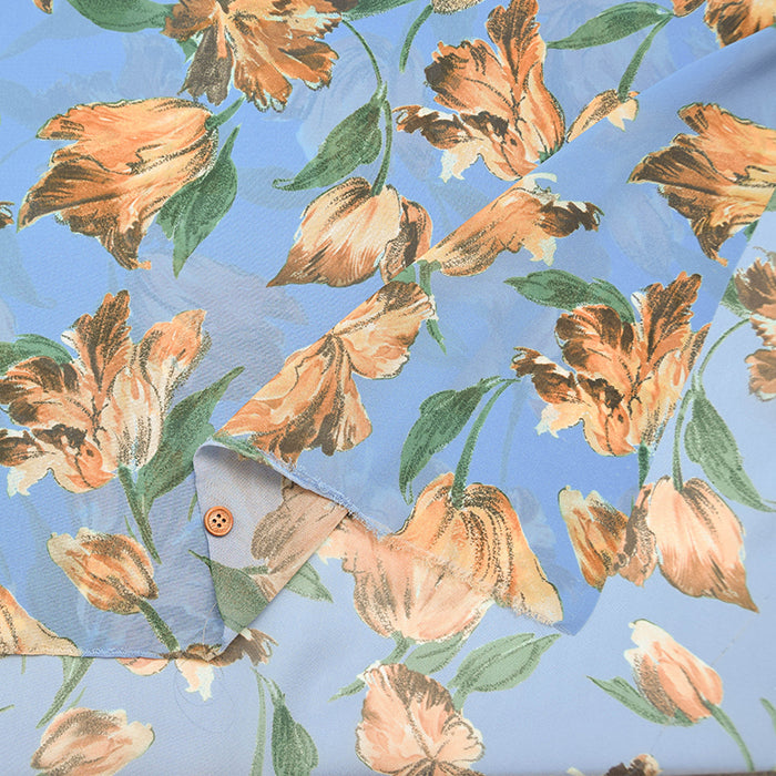 Esta tela de Georgette impresa presenta una textura transparente de drapey, por lo que es ideal para crear prendas elegantes y fluidas. La técnica de impresión de inyección de tinta permite expresar colores vibrantes y hermosos.