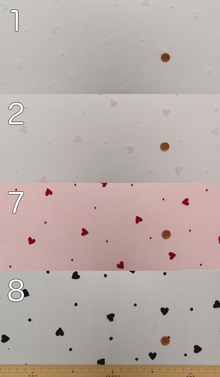 Esta es una tela de tul muy suave con un patrón de corazón hecho de rayón. A menudo se usa para disfraces, ropa y accesorios varios.