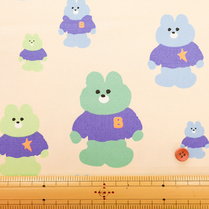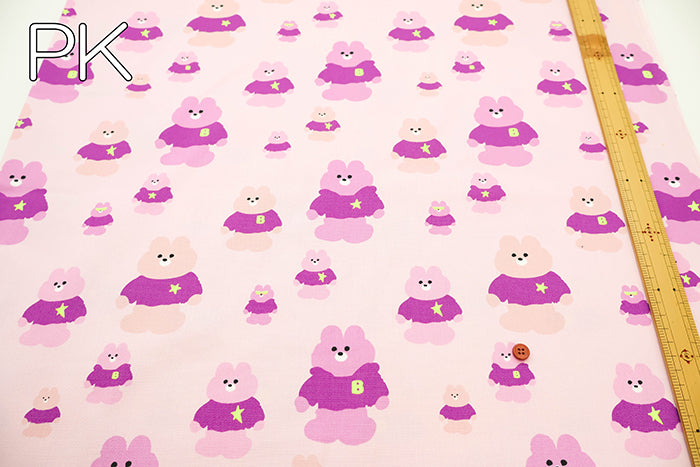Cotton Oxford Neon Printed Fabric - Mellow Friends Bear