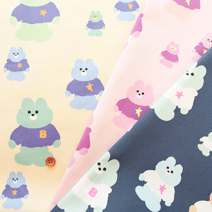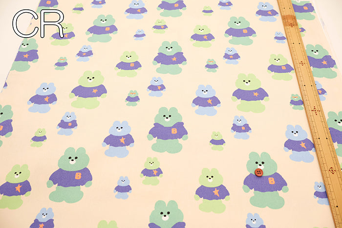 Cotton Oxford Neon Printed Fabric - Mellow Friends Bear