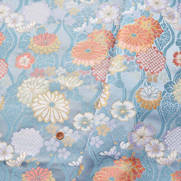 Il s'agit d'un type de tissu à motifs qui est tissé en mélangeant des fils colorés avec des fils d'or ou d'argent pour faire la trame afin que le motif se démarque.