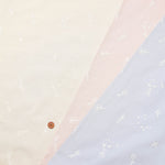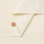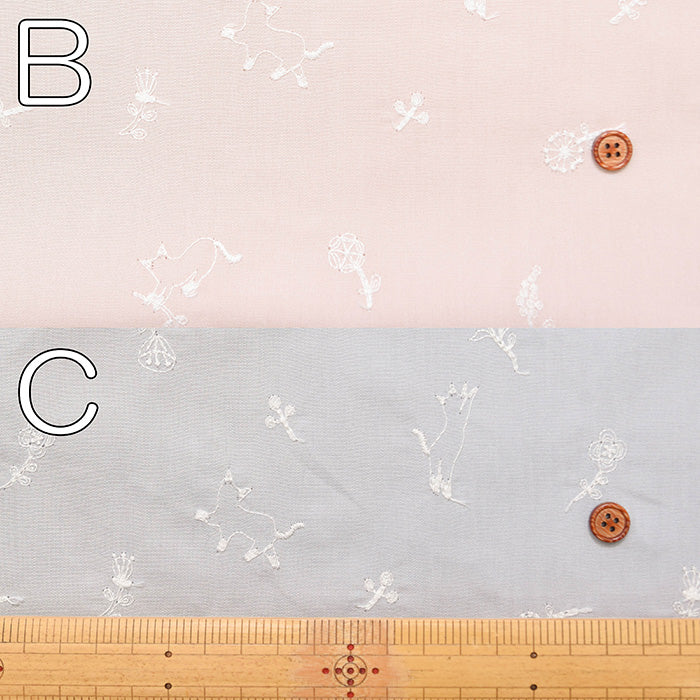 Ce tissu fait partie de la collection TOCOROCOMUGI, créé par l'illustrator et designer TocoroComugi. La conception présente des chats et des couronnes charmants brodés sur un tissu populaire de 40 écluses, couramment utilisé pour les chemises.