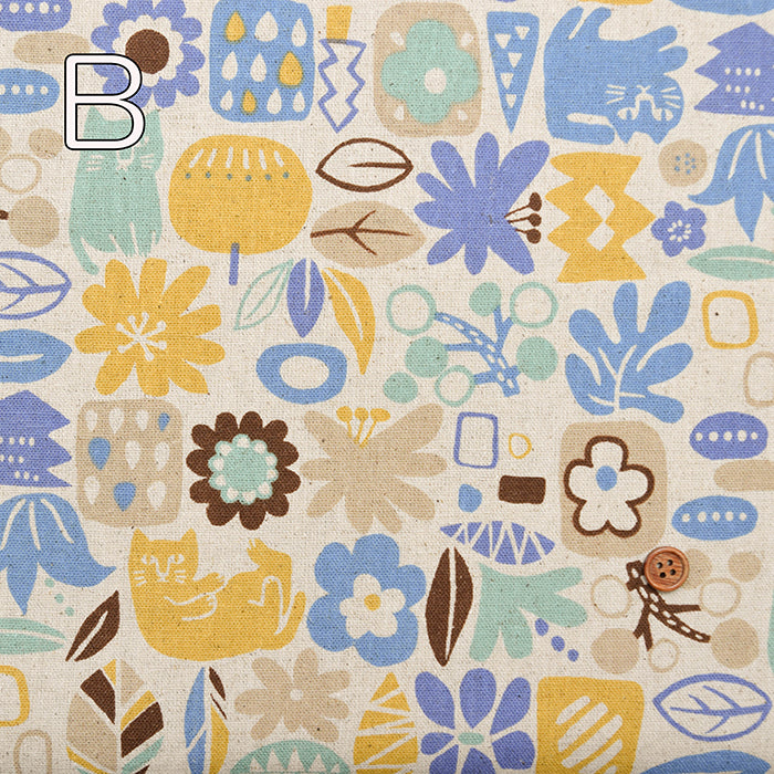 C / L Tissu en toile - chat et fleurs