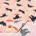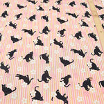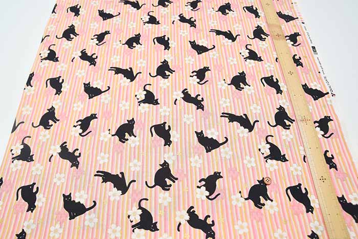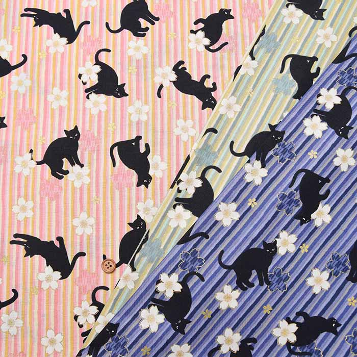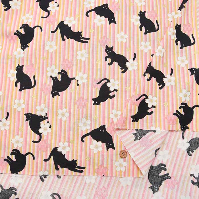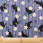 Tissu imprimé en mousseline en coton - orchidées en fleurs - fleurs de cerisier et chat