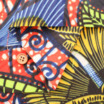 This fabric features a vibrant and beautiful African print with a waxed finish.