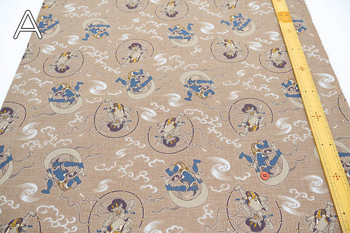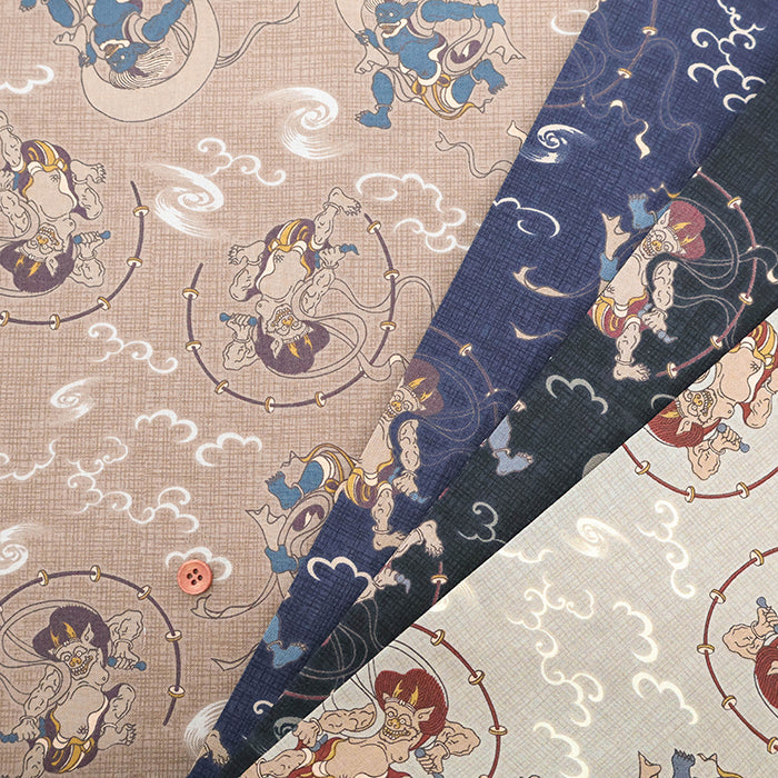 Cotton Square Printed Fabric - Dream-Colored Scenic Views: God of Wind and God of Thunder