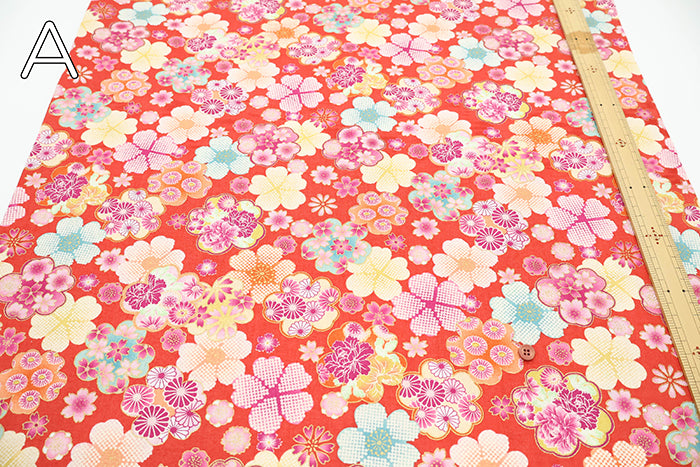 Cotton Embossed Print Fabric - Japanese Pattern Floral