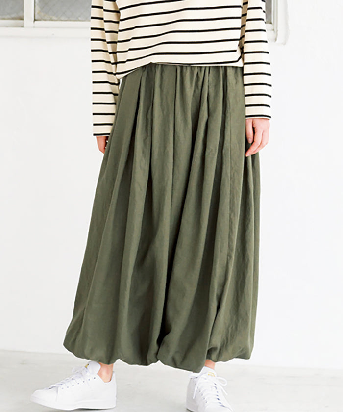 Designed without an inseam, these playful pants resemble a balloon skirt.