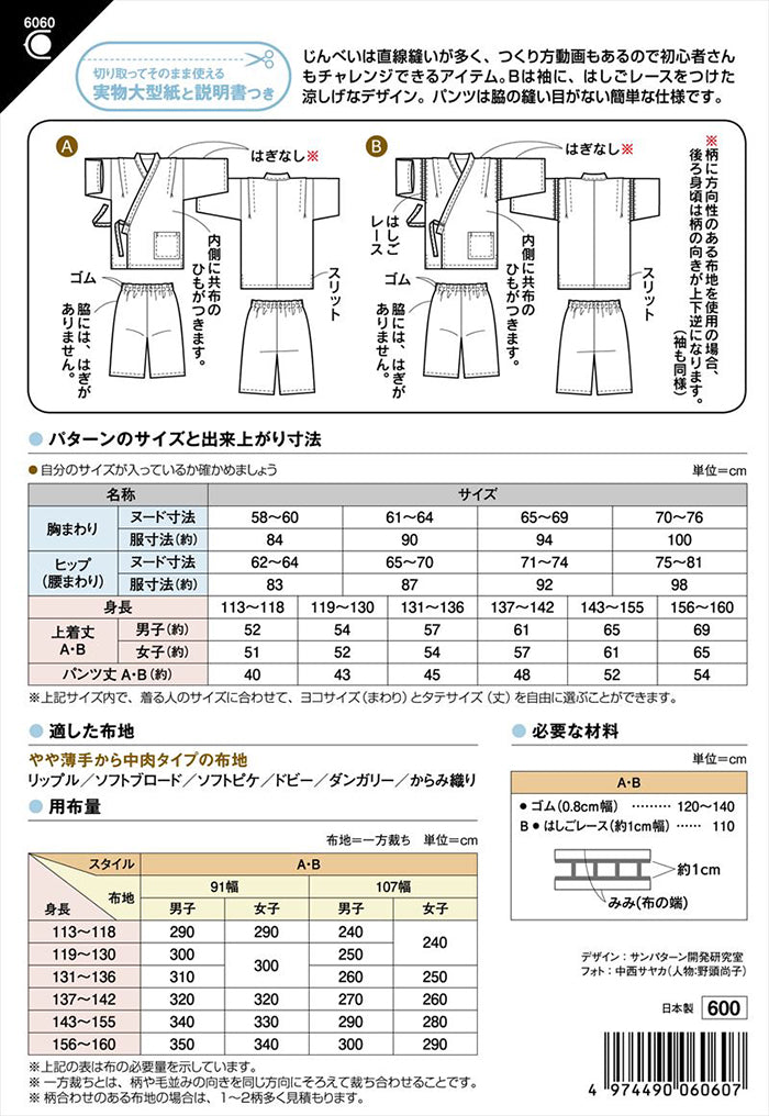 The classic summer jinbei features many straight seams, making it a suitable project for beginners.