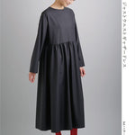A simple, timeless long dress featuring generous gathers from a just-waist seam.
