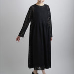 Long sleeves with a tapered line; a shallow, slightly wide neckline; pullover style with back button-loop opening.