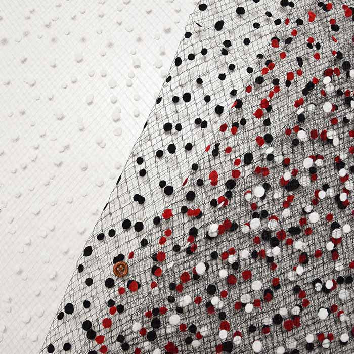 Simple Polka Dot Flocky est traité pour le tissu net.
