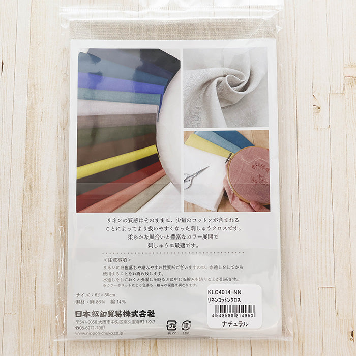 An embroidery cloth that maintains the soft texture of linen while the inclusion of cotton improves needle penetration and makes sewing easier.