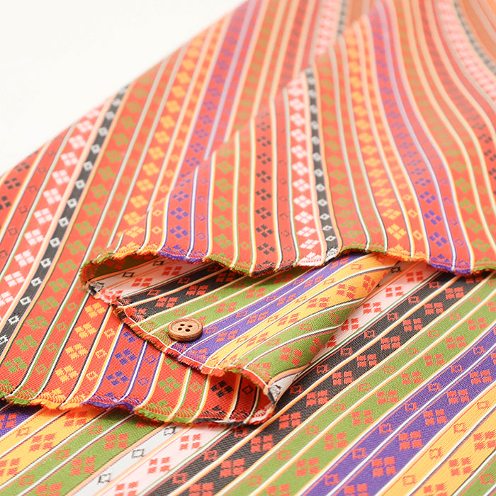 Kinran est un type de tissage dans lequel les fils d'or et d'argent sont mélangés avec des fils colorés sous forme de trame et tissés de telle manière qu'un motif émerge.