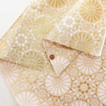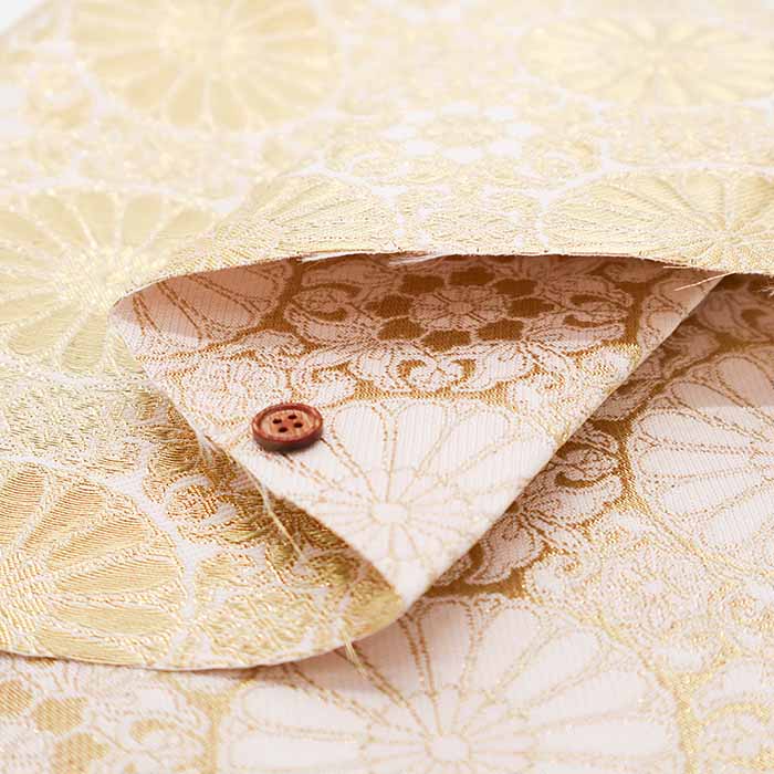 Kinran (Brocade d'or) a été tissé principalement à Nishijin, Kyoto. Kinran est un type de tissage dans lequel les fils d'or et d'argent sont mélangés avec des fils colorés sous forme de trame et tissés de telle manière qu'un motif émerge. Le brocade a été largement utilisé pour les produits japonais dans le passé comme un style purement japonais, mais de nos jours, il est utilisé dans une variété de scènes, y compris la décoration intérieure, transcendant le Japon et l'Occident. Brocade, qui est très populaire dans nos magasins, est également très kyoto et fait un grand souvenir ou un cadeau. Ce serait merveilleux de faire un livre d'origine rouge. Le matériau en polyester est également à un prix raisonnable.