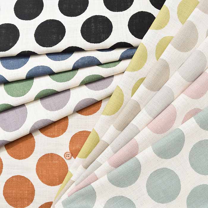 면 린넨과 같은 슬러브 프린트 패브릭 - 폴카 도트