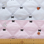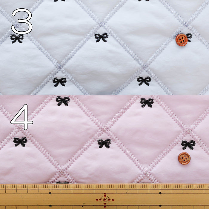 자수 리본 디테일로 아름답게 장식 된 퀼팅이있는 나일론 직물.