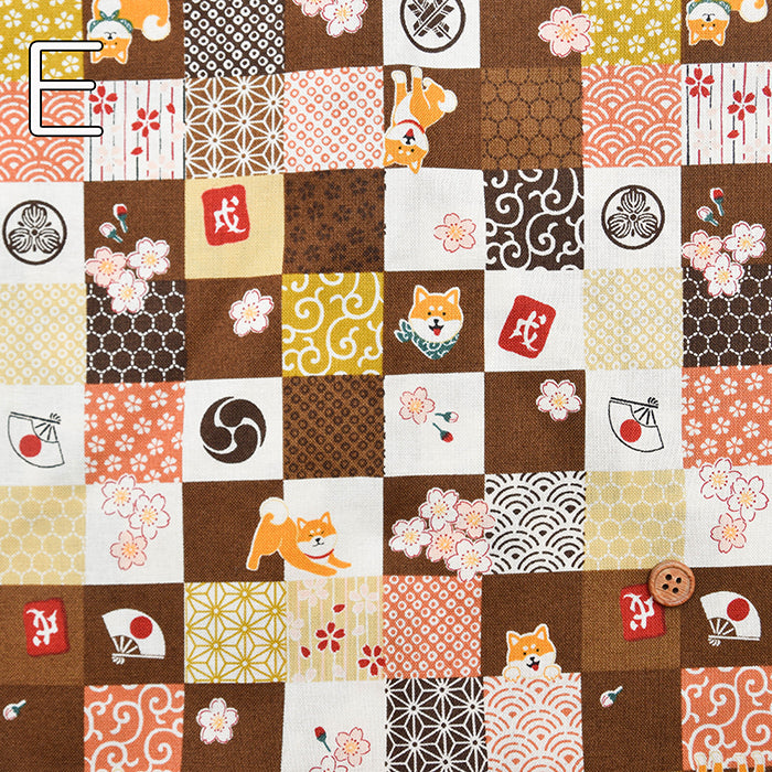 Cotton Muslin Fabric-“공원에서 걷기, 일본 패치 시바 이누”