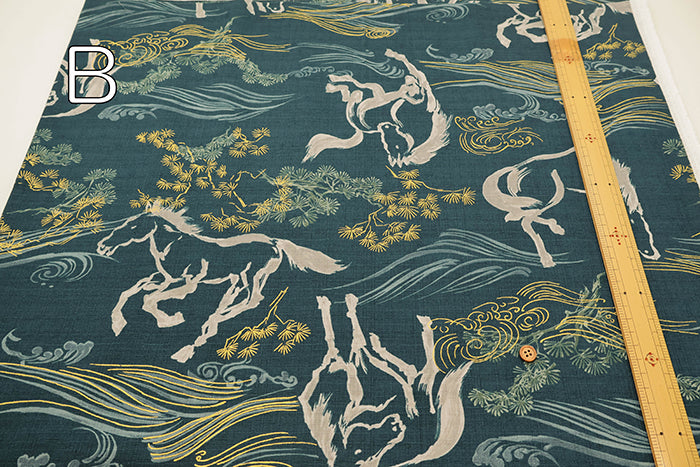 Cotton Dobby Fabric - Japanese Pattern Horse