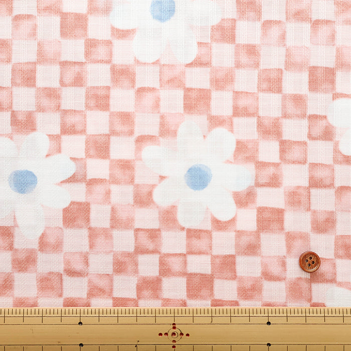 Cotton Piqué Dobby Print Fabric - Checkerboard Flower
