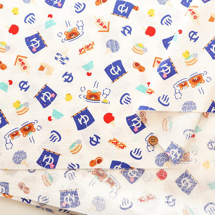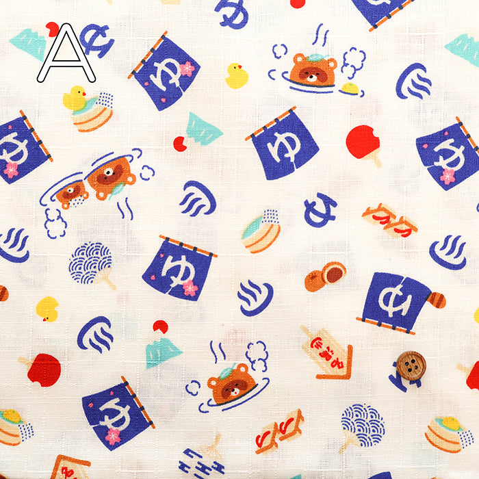 Cotton Dobby Fabric - Onsen Tanuki