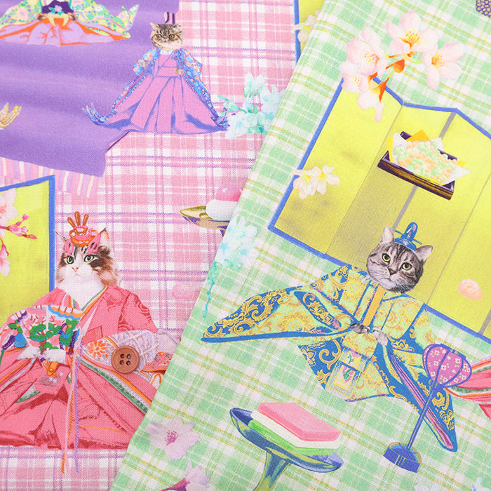 Cotton Muslin Inkjet-printed Fabric - nora. Hina Cat Festival