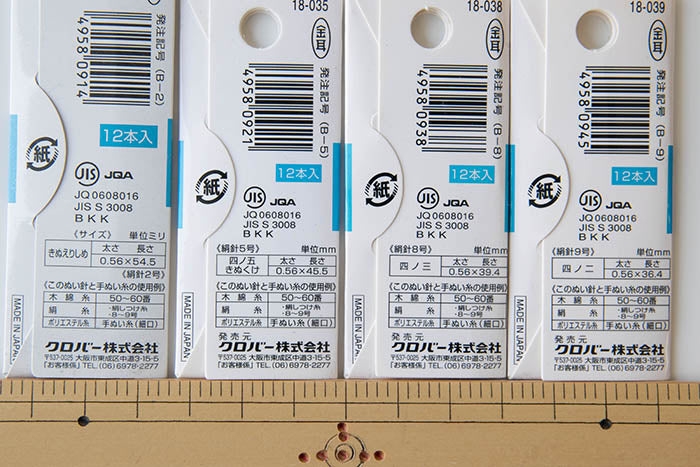 바늘을 선택할 때는 바늘 두께를 직물에 맞추는 것이 가장 좋습니다. 원래 일본 재봉을위한 바늘을 일본 바늘이라고 불렀으며 서양 바느질 용 바늘은 서부 바늘이라고 불 렸습니다.