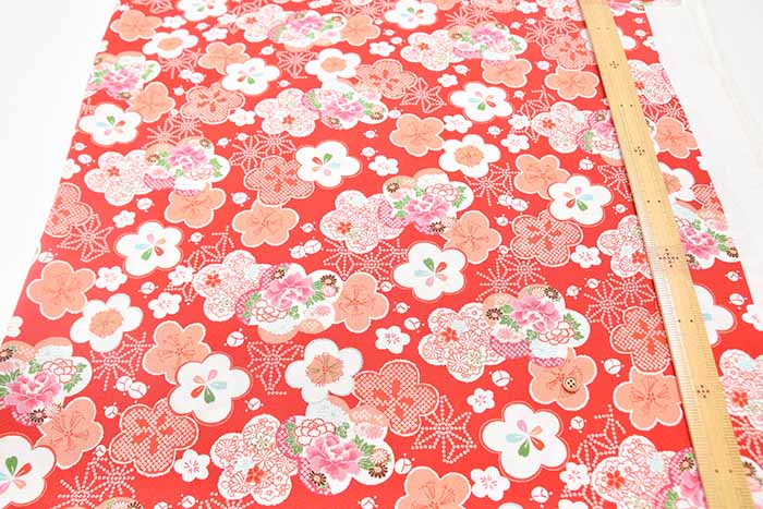 폴리 에스테르 니시코시 치리 멘 프린트 패브릭 - UME (자주)