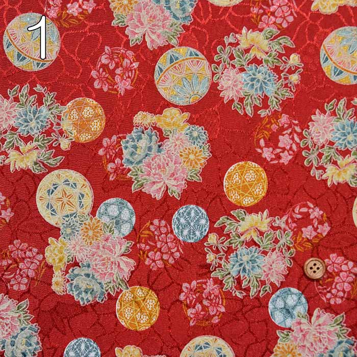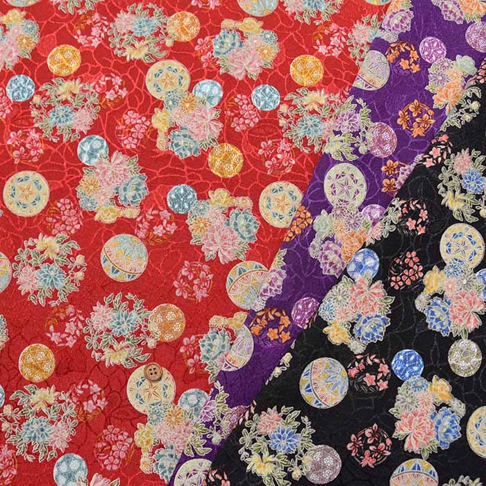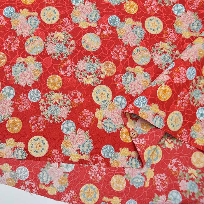 이 전통적인 직물은 오랫동안 기모노에 사용되어 왔지만,이 chirimen은 물과 주름에 내성이있는 폴리 에스테르로 만들어졌습니다.
