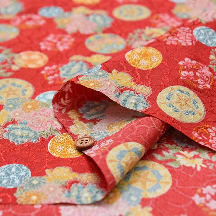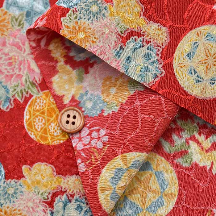 이것은 기모노와 기타 전통 의류에 사용되는 전통적인 원단이지만 물과 주름에 저항력이있는 폴리 에스테르로 만들어졌습니다.