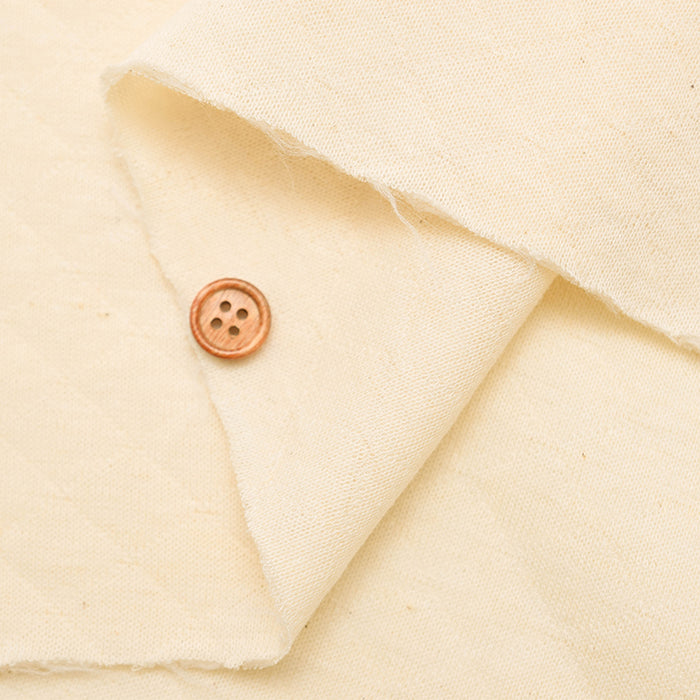 이 가벼운 면화 니트 패브릭은 퀼트 마감 처리와 함께 두 개의 층을 특징으로합니다.
