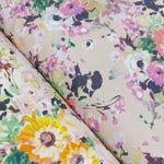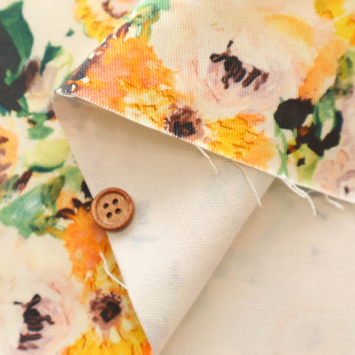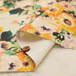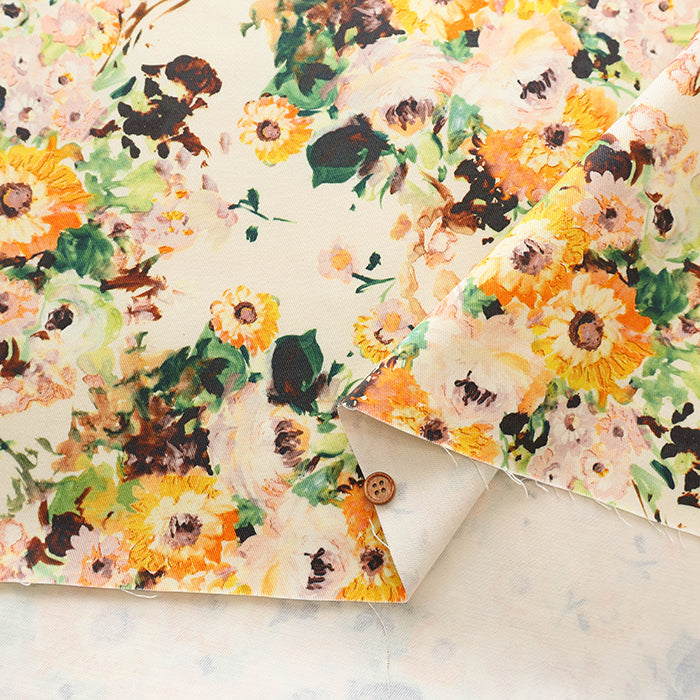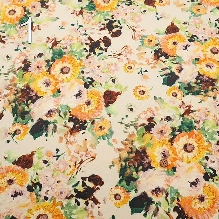 이것은면을 폴리 우레탄과 혼합하여 만든 스트레치 직물이며 인쇄 된 디자인이 있습니다.