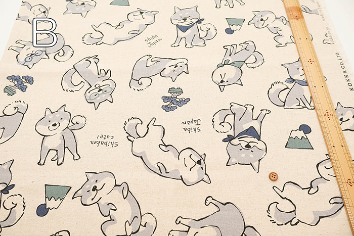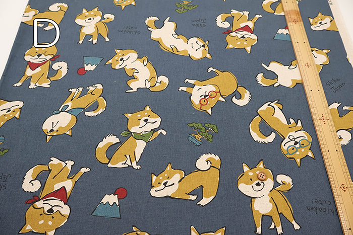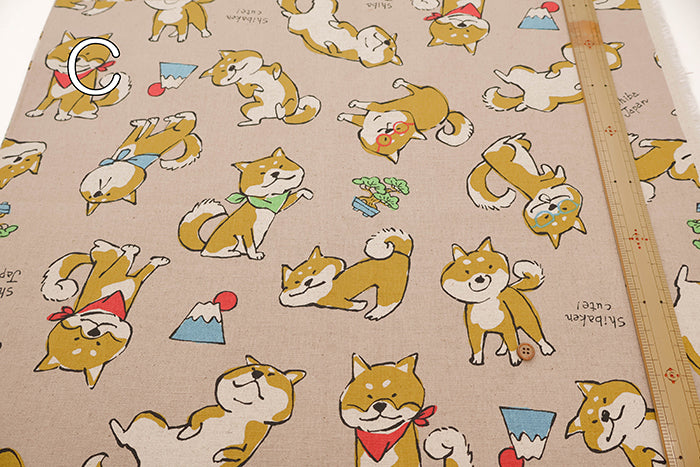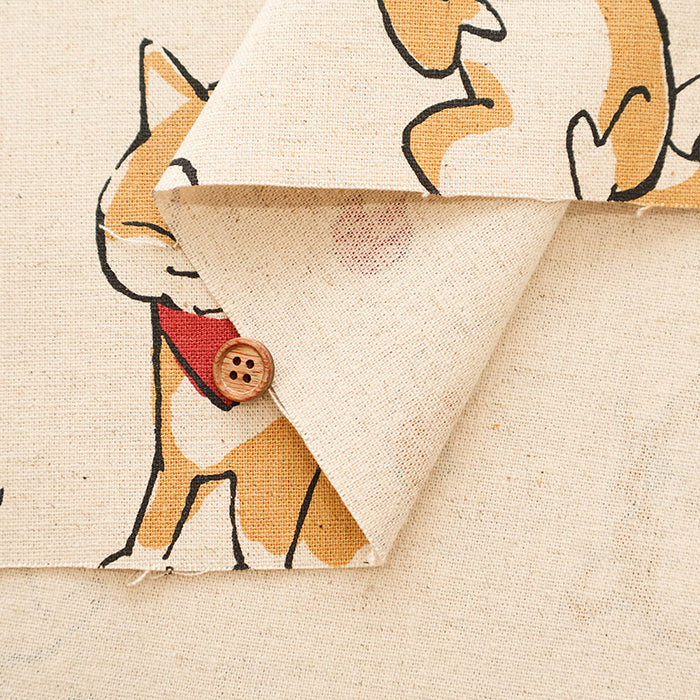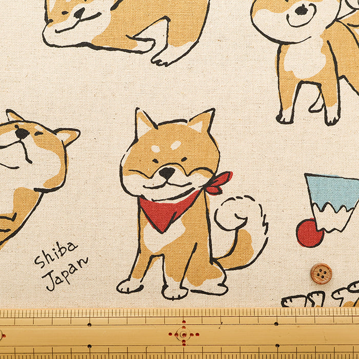 C/L Canvas Print Fabric - Doodle Animal Shiba JAPAN