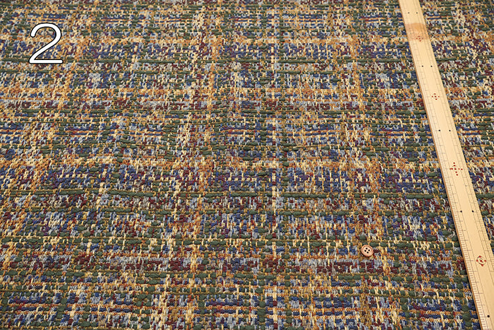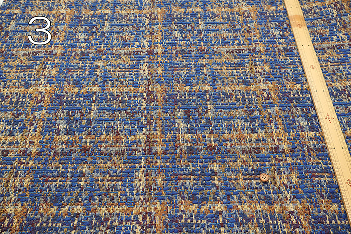 A luxurious tweed-style jacquard fabric woven with multiple colors vertically and horizontally.