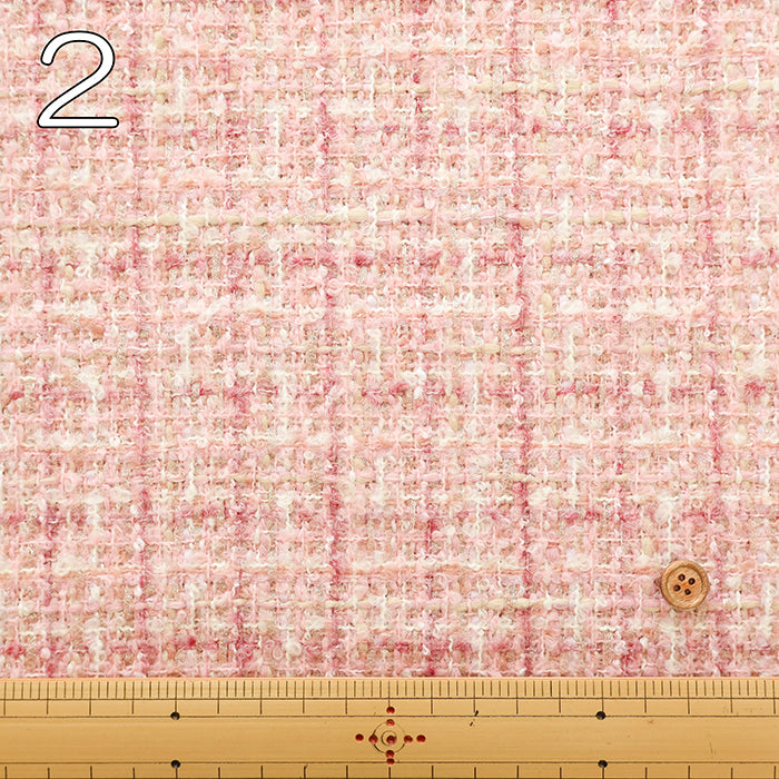 A luxurious tweed with multiple colors in vertical and horizontal patterns.