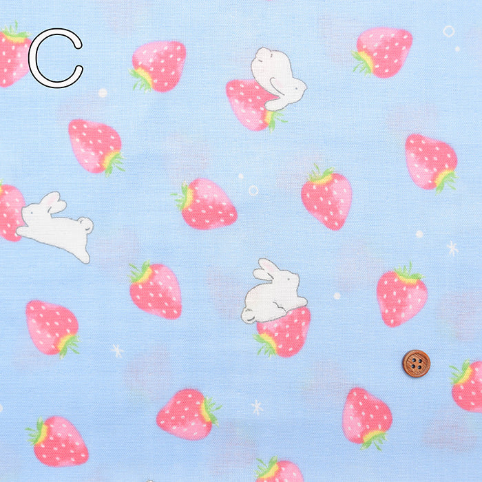 면화 이중 거즈 프린트 패브릭 - 딸기와 토끼