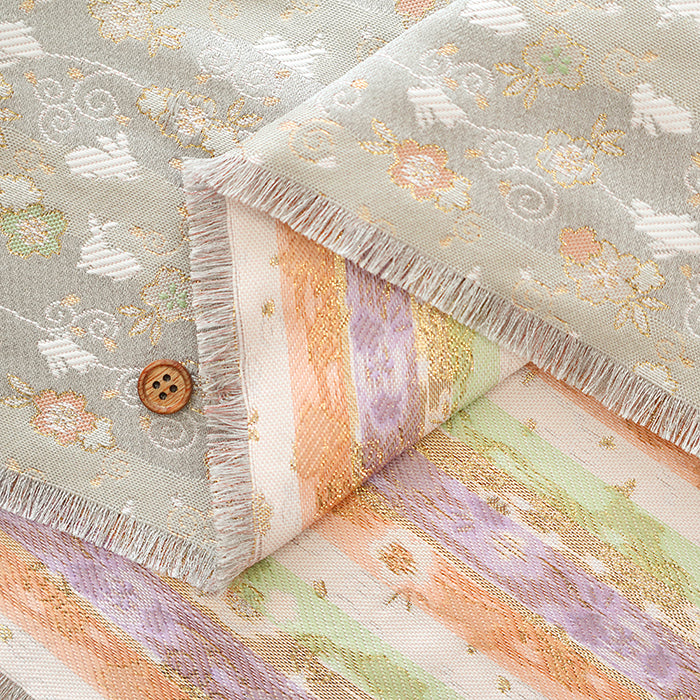 Kinran is a type of weaving in which gold and silver threads are mixed with colored threads as weft, and woven in such a way that a pattern emerges.