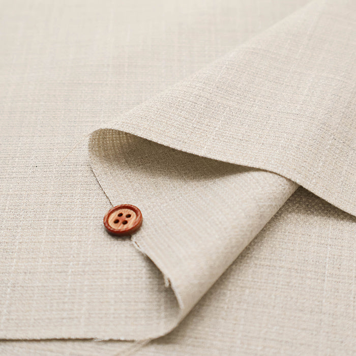 The blend of linen and polyester reduces prickliness while adding a slight softness, making it easy to work with. In addition to clothing, it can also be used for interior decor and small accessories.