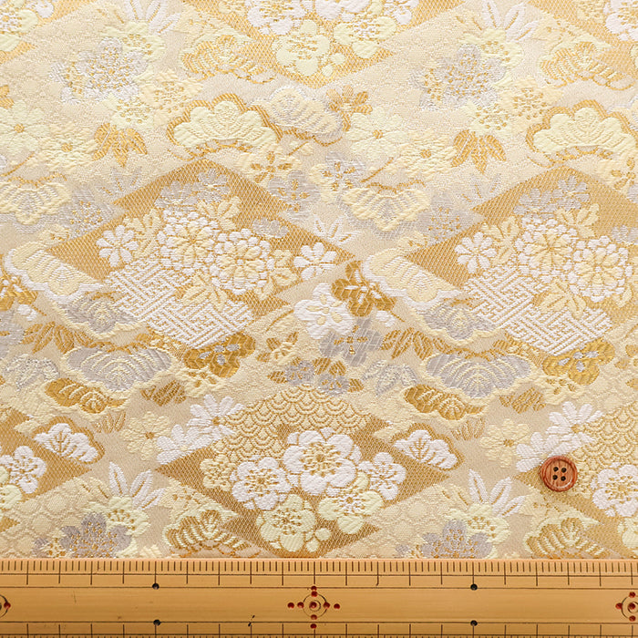 Kinran is a type of weaving in which gold and silver threads are mixed with colored threads as weft, and woven in such a way that a pattern emerges.
