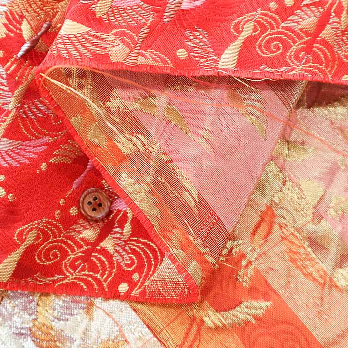 Kinran (gold brocade) has been woven mainly in Nishijin, Kyoto. Kinran is a type of weaving in which gold and silver threads are mixed with colored threads as weft, and woven in such a way that a pattern emerges. Brocade has been widely used for Japanese products in the past as a purely Japanese style, but nowadays it is used in a variety of scenes, including interior decoration, transcending both Japan and the West. Brocade, which is very popular in our stores, is also very Kyoto-like and makes a great souvenir or gift. It would be wonderful to make an original red seal book. The polyester material is also reasonably priced. *Please note that the threads tend to fray when cut due to the nature of the fabric. *Although the material is washable, we recommend hand washing or partial washing because it is a delicate fabric.