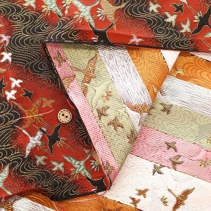 Kinran is a type of weaving in which gold and silver threads are mixed with colored threads as weft, and woven in such a way that a pattern emerges.