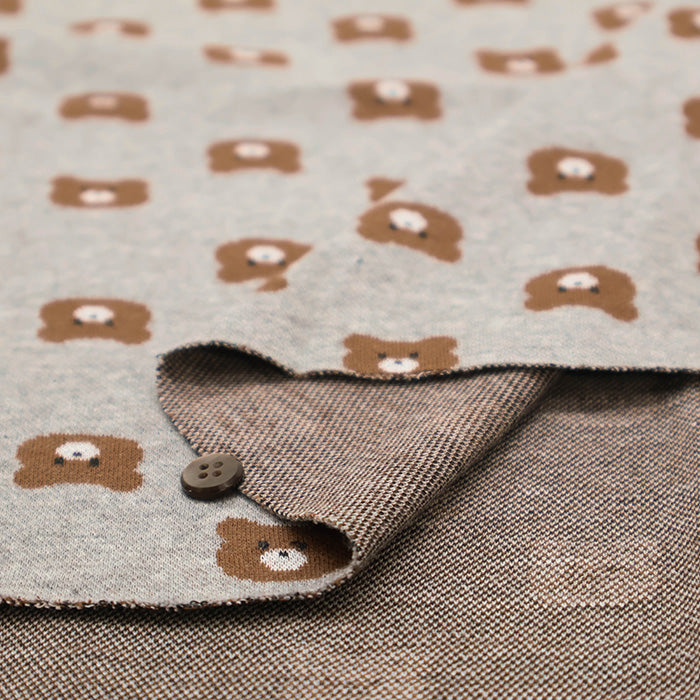 This jacquard knit fabric has a moderate thickness and stretch, making it easy to handle.