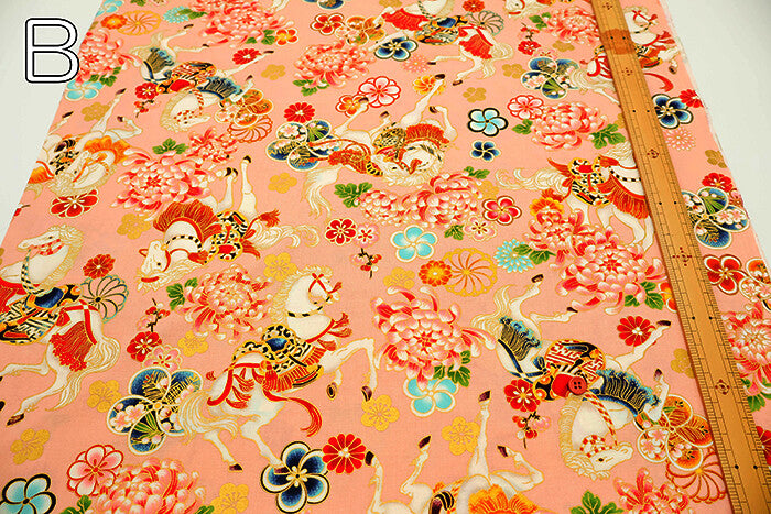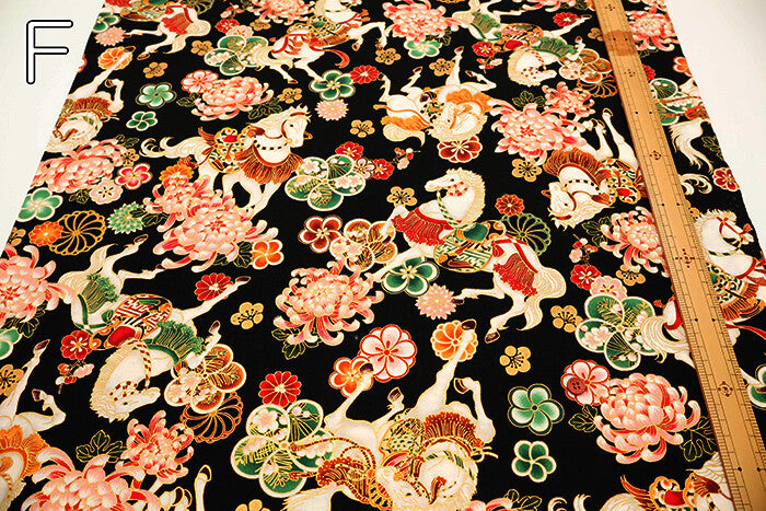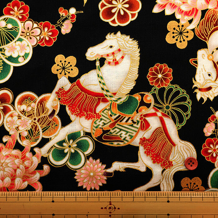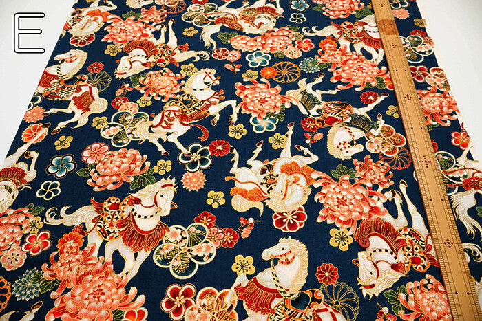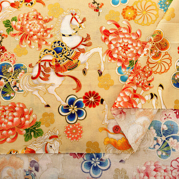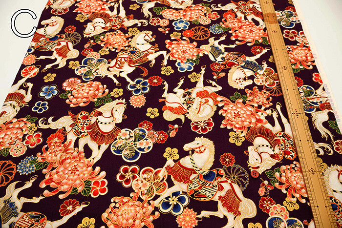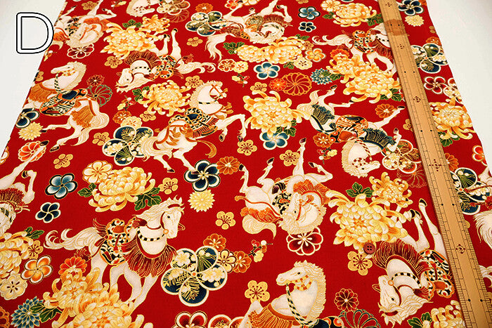 Cotton Sheeting Printed Fabric - Hyakka Ryoran Zodiac [Horse]