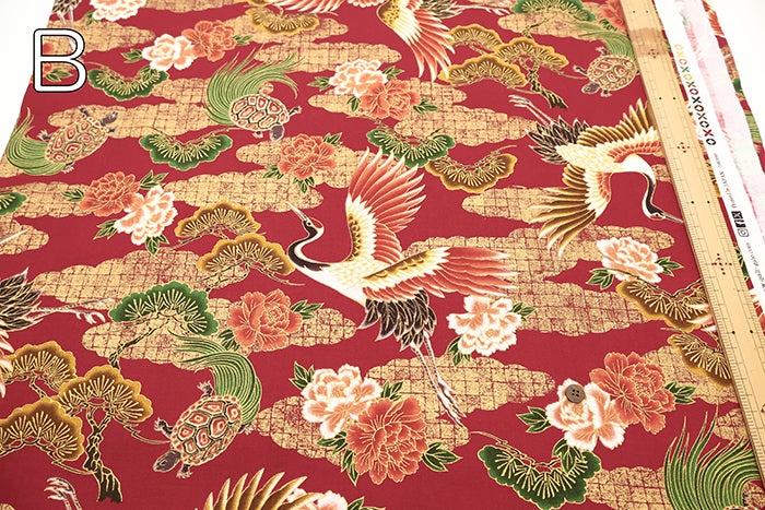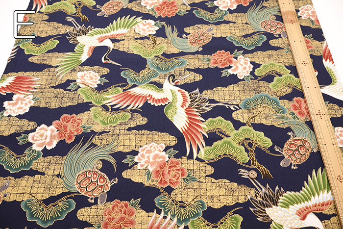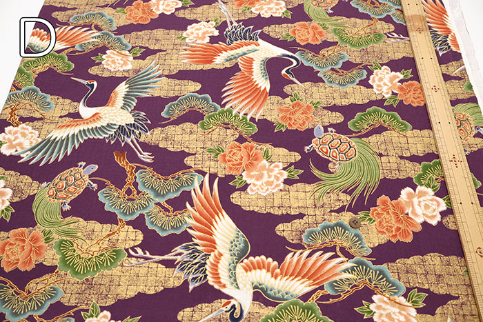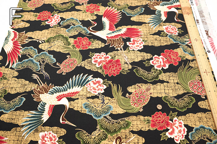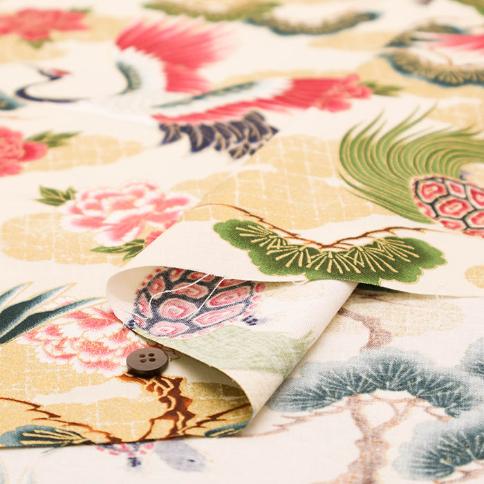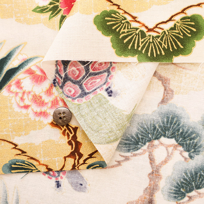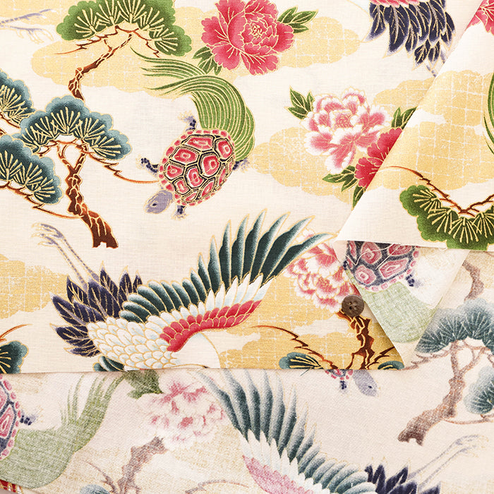 Cotton Sheeting Printed Fabric - Hyakka Ryoran Crane and Tortoise