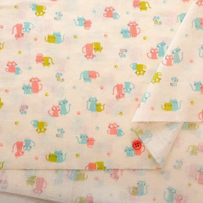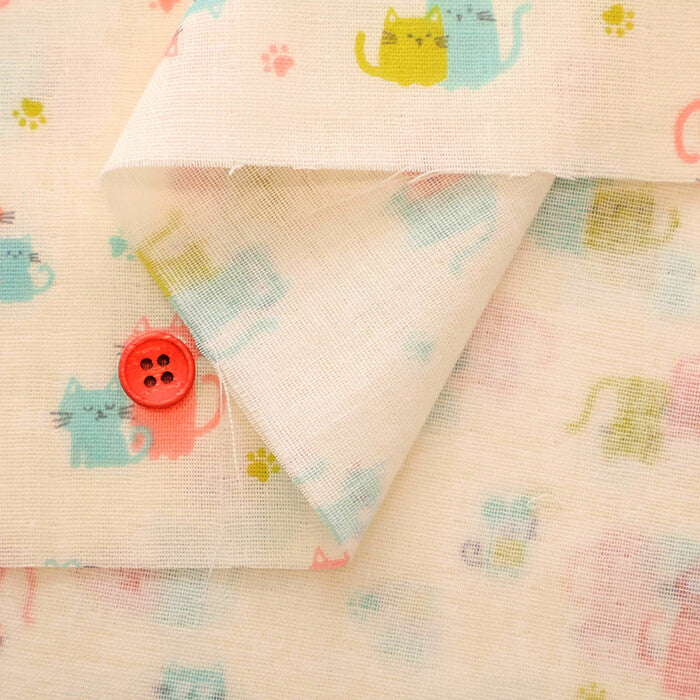 Cotton Double Gauze Printed Fabric - fluffy feeling Cat